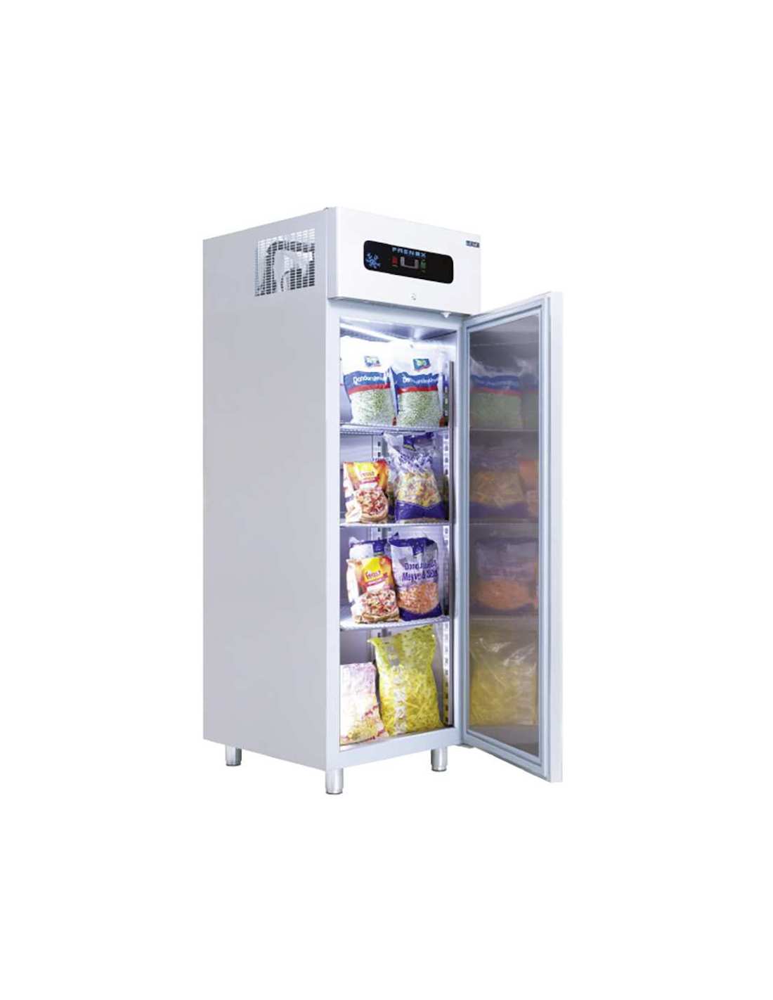 650 L - 1 porte pleine - 440 W 230 V mono - Corps intérieur/extérieur en acier inoxydable AISI 430 SB. Isolation en polyuréthane sans HCFC 35/40 kg/m3. Panneau de commande numérique. Régulateur Dixell. Dégivrage automatique à résistance électrique. Pieds réglables en acier inoxydable. Joints magnétiques amovibles et faciles à nettoyer. 3 grilles plastifiées GN 2/1 par porte. Porte avec serrure. 29 niveaux maximum par porte. 20 kg / grille. Maximum 140 kg pour une porte, 230 kg pour 2 portes. Classe climatique 4.