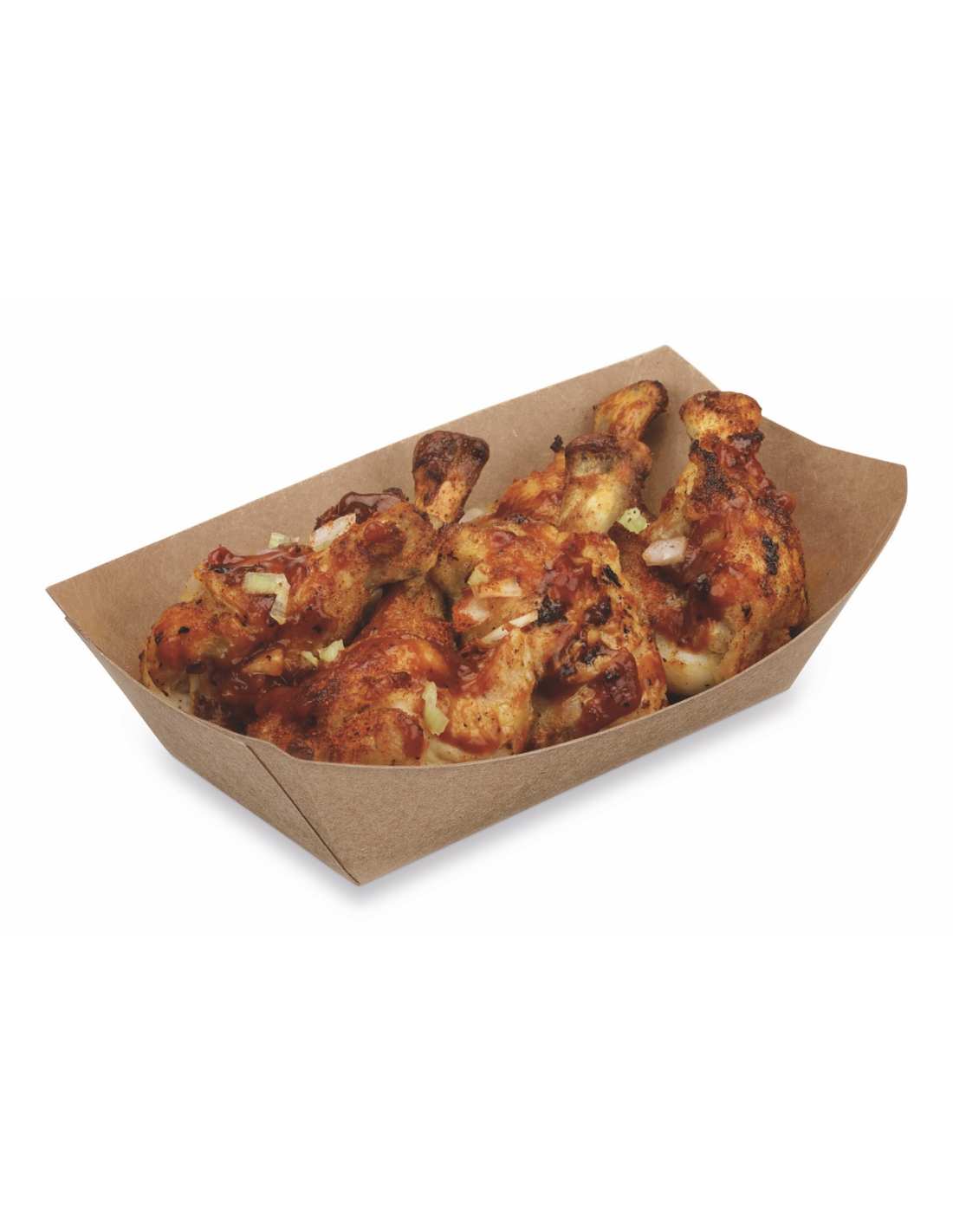 Barquette forme bateau en carton kraft 100% recyclable. Prix au sachet- vendu par carton.