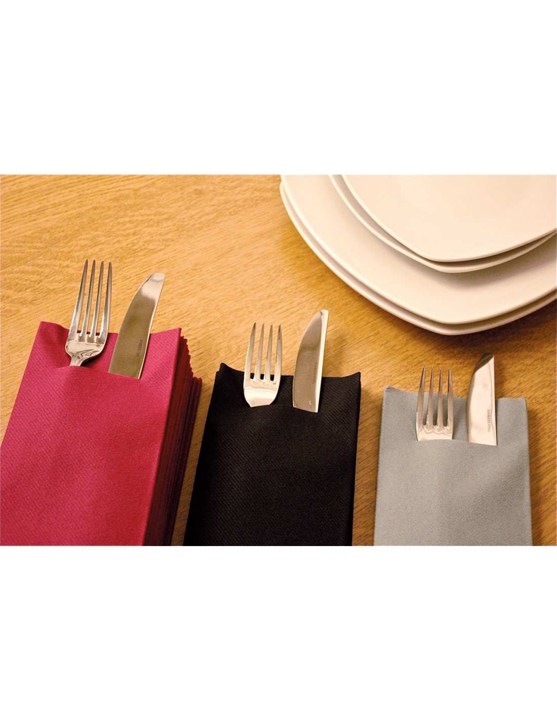 Serviette étui 40x40 cm avec découpe. Prix au sachet, vendu par carton.