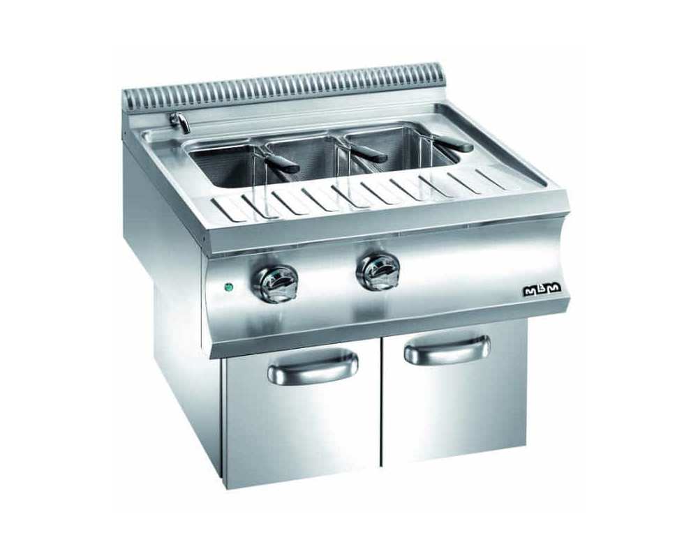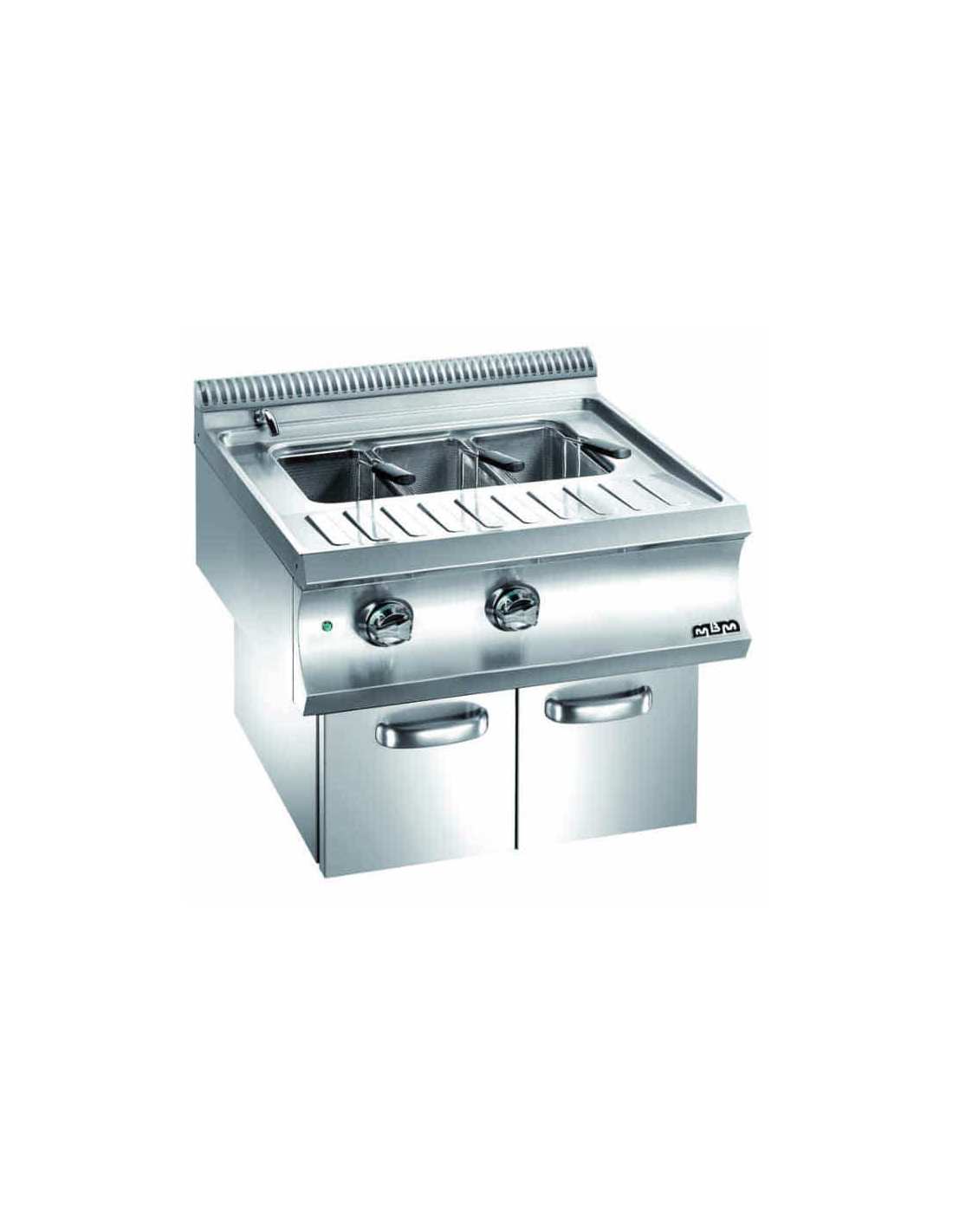 Le plan de travail emboutit est réalisé en acier inoxydable AISI304 épaisseur 1,5 mm, il possède des angles arrondis pour la récuperation des liquides. Les cuves sont réalisées en acier inoxydable anti corrosion AISI316, et possèdent une zone de trop plein permettant dévacuer les amidons. Les angles sont arrondis pour faciliter le nettoyage, La grille dégouttage permet de deposer le panier de cuisson. Les paniers (option) sont réalisés en acier inoxydable AISI304 et sont équipés de poignées antichaleur. Version gaz: Bruleur acier à fl amme stabilisée. Thermocouple et vanne de sécurité. Allumage piezzo. Version electrique: résistance chauffantes blindées, réglage de la chauffe avec contacteur 4 position et thermostat de sécurité.