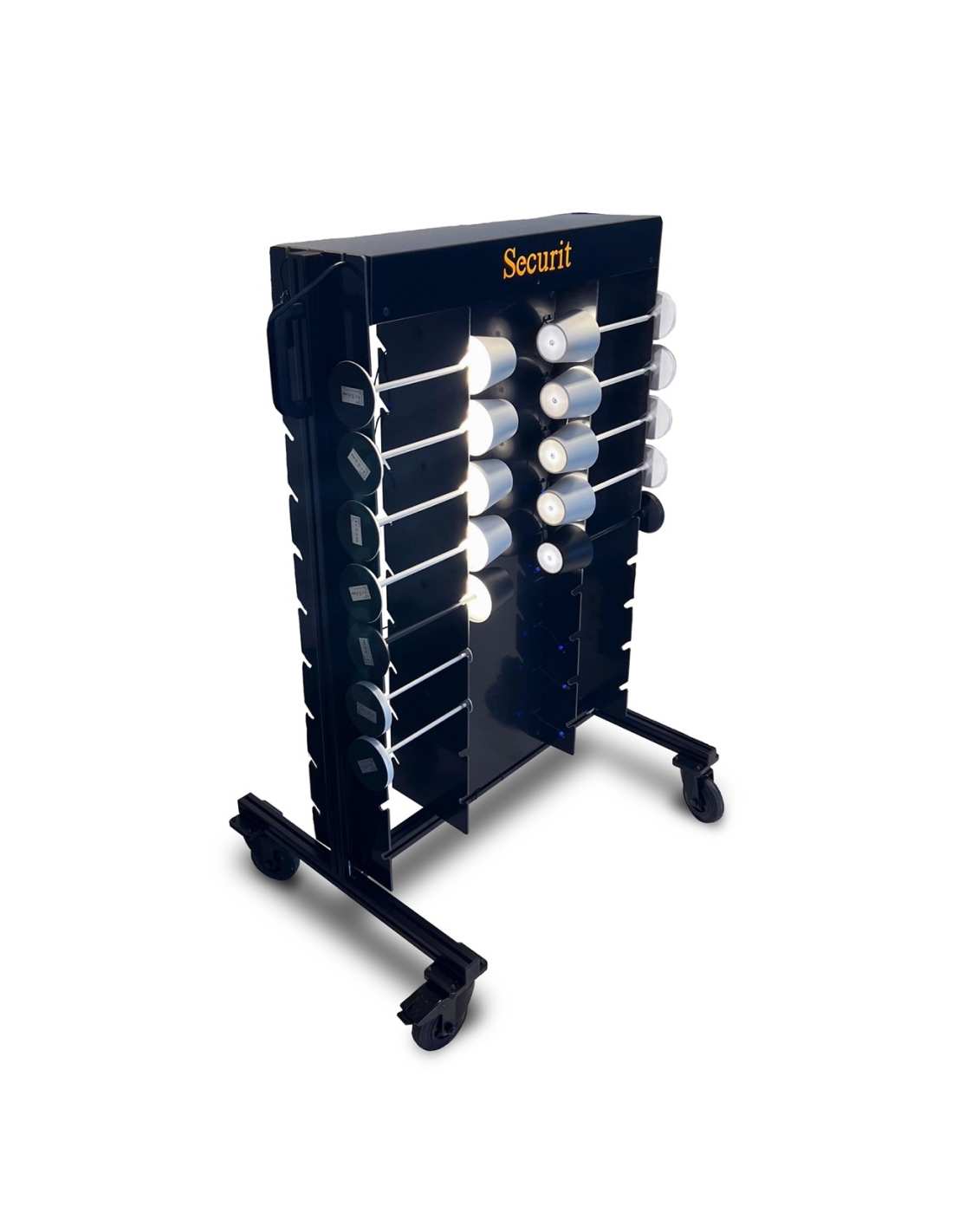 Élégante, elle est facile à déplacer grâce aux roulettes. Gain de temps et de place pour recharger vos lampes. Permet de charger jusqu’à 36 lampes à la fois en seulement 4 heures. Pratique, elle convient parfaitement aux bars, restaurants, hôtels et lieux de divertissement. Fabriqué en Europe avec 4 roues et une garantie de 2 ans, sa construction en aluminium est non seulement durable et s'adapte à tous les décors.