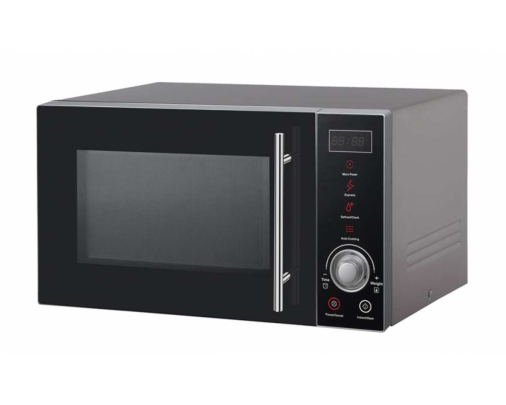 Intérieur/Extérieur Inox - 900 W - 230 V mono - Intérieur 338x361x230 mm - Plateau verre rotatif ø 270 mm. Minuterie pré-programmée (cycle 60 secondes). Sonnerie en fin de cycle. Éclairage intérieur. Fonction 8 programmes de cuisson.