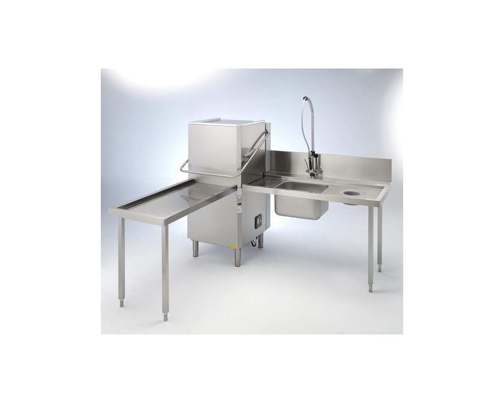 Consommation d’eau par cycle : 2,3 L. Carosserie inox AISI 304, bras de lavage et rinçage inox. Double filtre d’aspiration de pompe de lavage. Cycle d’auto nettoyage, tableau de commande électronique avec auto-diagnostic. Pompe de rinçage et air gap, pour un rinçage constant à 85 °C.