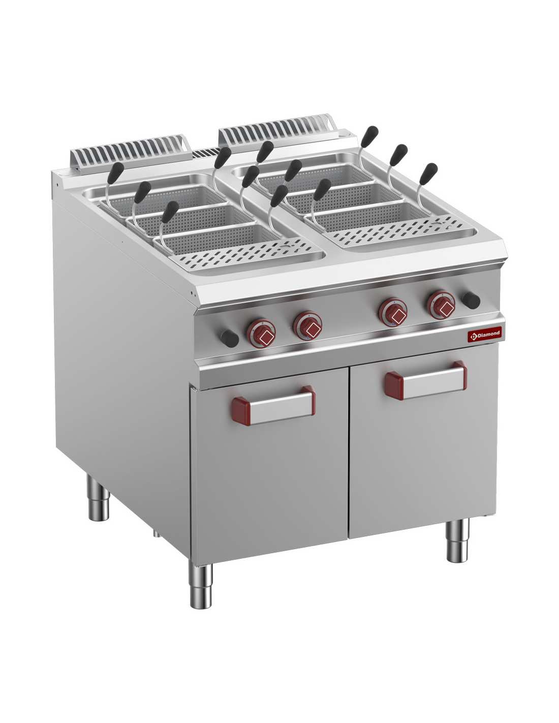 Cuiseur polyvalent pour pâtes, riz, légumes, oeufs,... Le TOP spécialement embouti et l'égouttoir perforé spécialement conçu permettrons d'égoutter les divers paniers à pâtes, ainsi que de contenir les éventuels débordements de l'eau. La cuve est réalisée en acier inox AISI 316 (résistant à la corrosion du sel et à l'usure), complètement soudée (en continu), elle est munie de série d'un filtre à la sortie de la décharge et d'un deuxième filtre à l'évacuation du trop-plein, de manière à retenir les pâtes tombées dans l'eau de cuisson, évitant ainsi de boucher les canalisations. Sur demande: couvercle pour cuve, permettant une ébullition de l'eau plus rapide... ainsi que de nombreux paniers spécifiques.