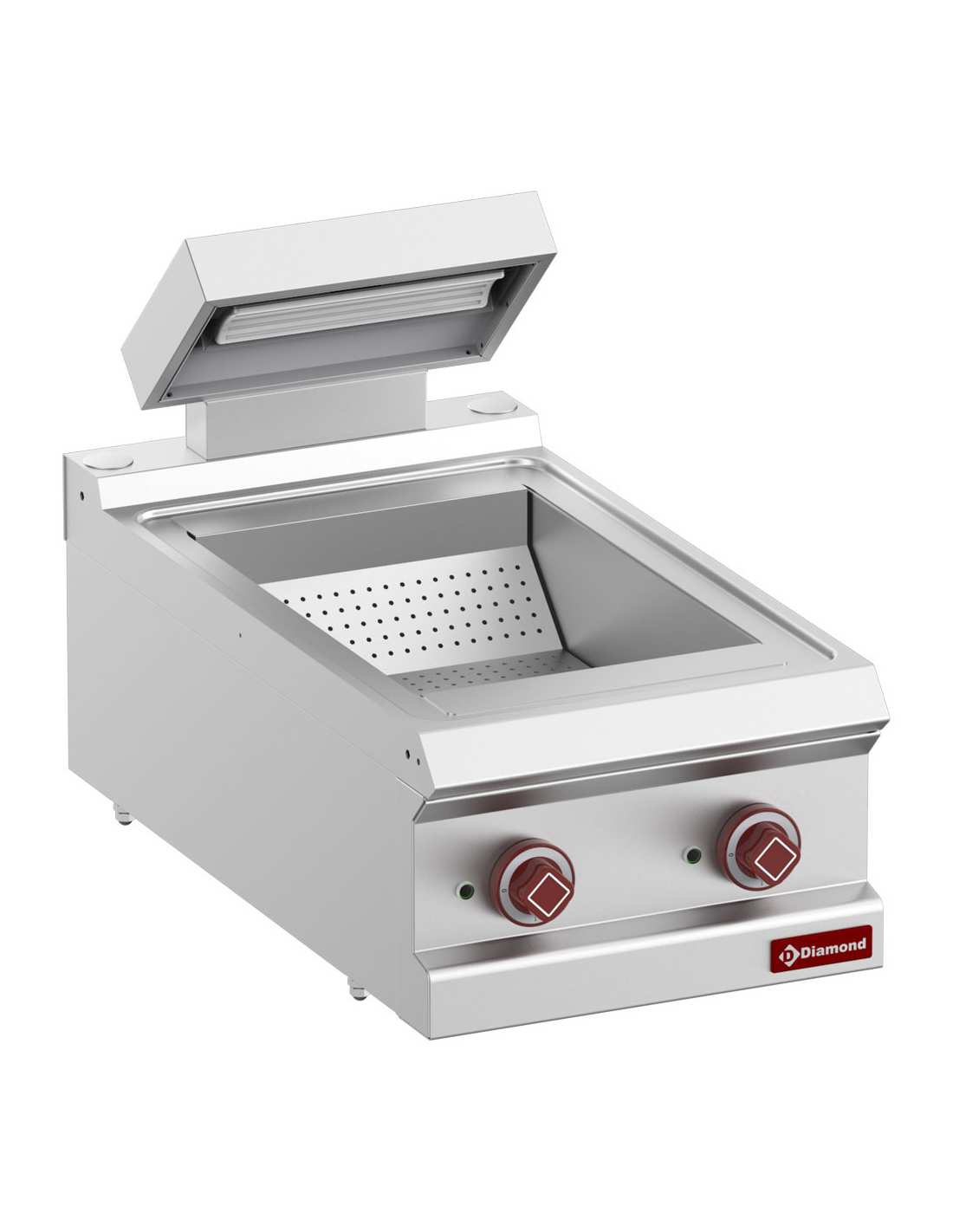 • Cuve emboutie en acier inox AISI 304, avec tous les coins et angles intérieurs arrondis pour un entretien facile et hygiénique, fond perforé permettant l'égouttage des aliments.