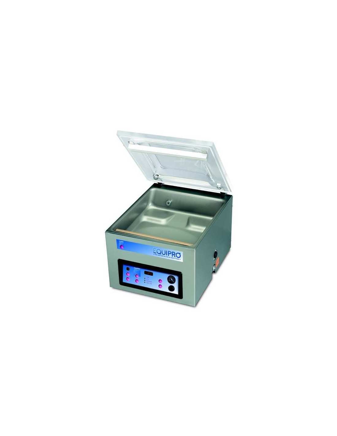 Pompe 21 m3/h - Barre de soudure 420 mm Chambre 420x370x180 mm - Cycle 15-35 s 0,75/1 kW - 230 V mono - Poids 65 kg - Remise en atmosphère 10 programmes personnalisables.