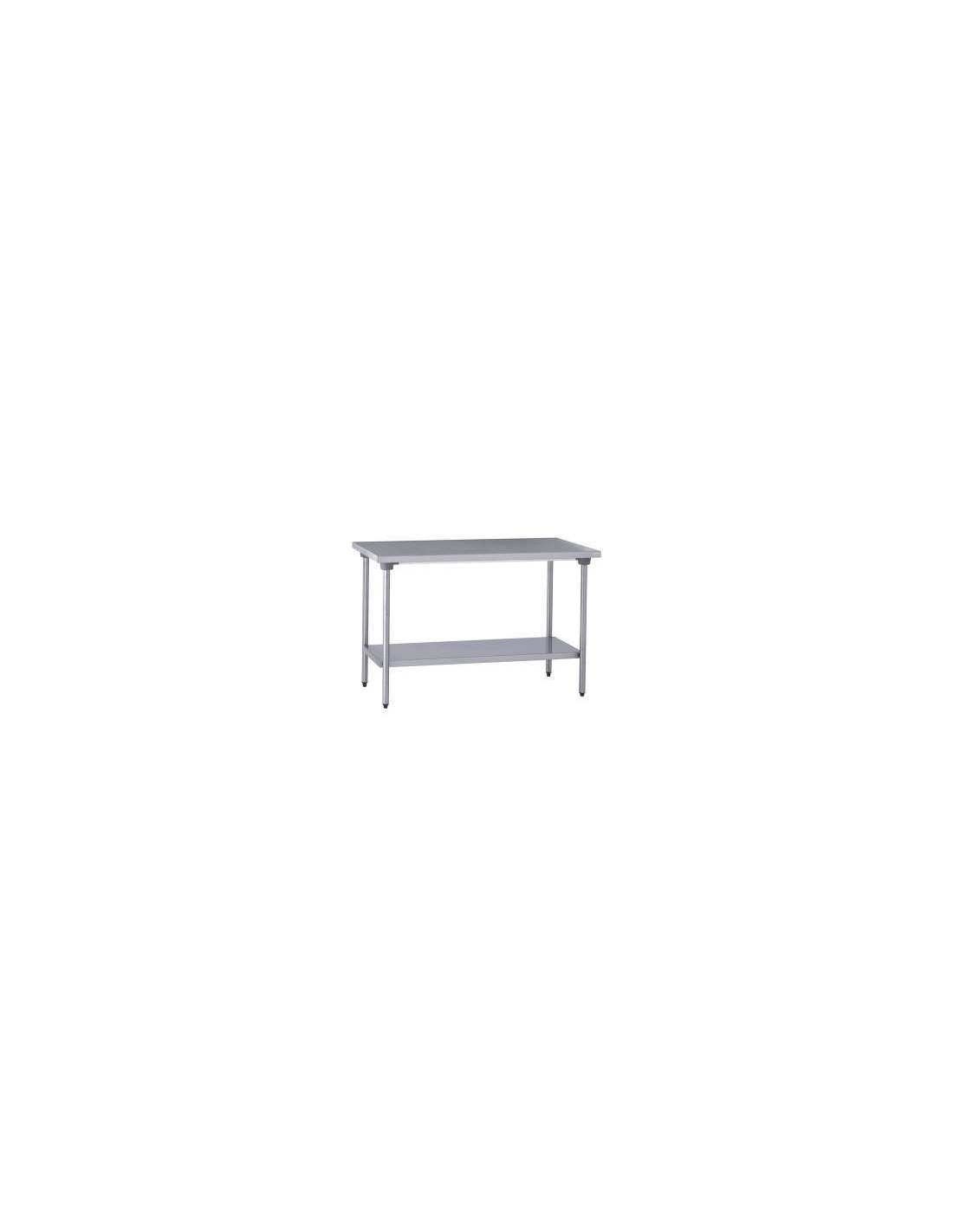 Plan de travail en acier inoxydable épaisseur 1,2 mm, doublé par panneau stratifié hydrofuge et renforcé par un cadre en profilé élu - Montage par simple emboîtement autobloquant - Système breveté - Piètement en retrait à l'arrière pour les tables adossées (65 mm) - Bandeau à bords droits hauteur 40 mm, bord écrasé périphérique - Piètement en tube en acier inoxydable alimentaire, Ø 38 mm avec vérins réglables