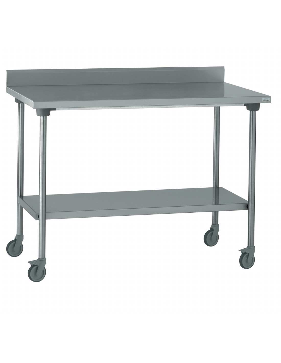 Table inox chr adossée sur roues avec étagère 700 x 1600